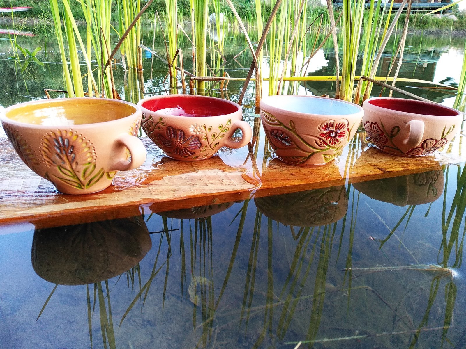 Sip your favorite beverage from this charming set of four handcrafted terracotta mugs, each uniquely adorned with intricate floral carvings and vibrant glazed interiors. Perfect for bringing a touch of nature’s tranquility to your daily routine or sharing with loved ones.