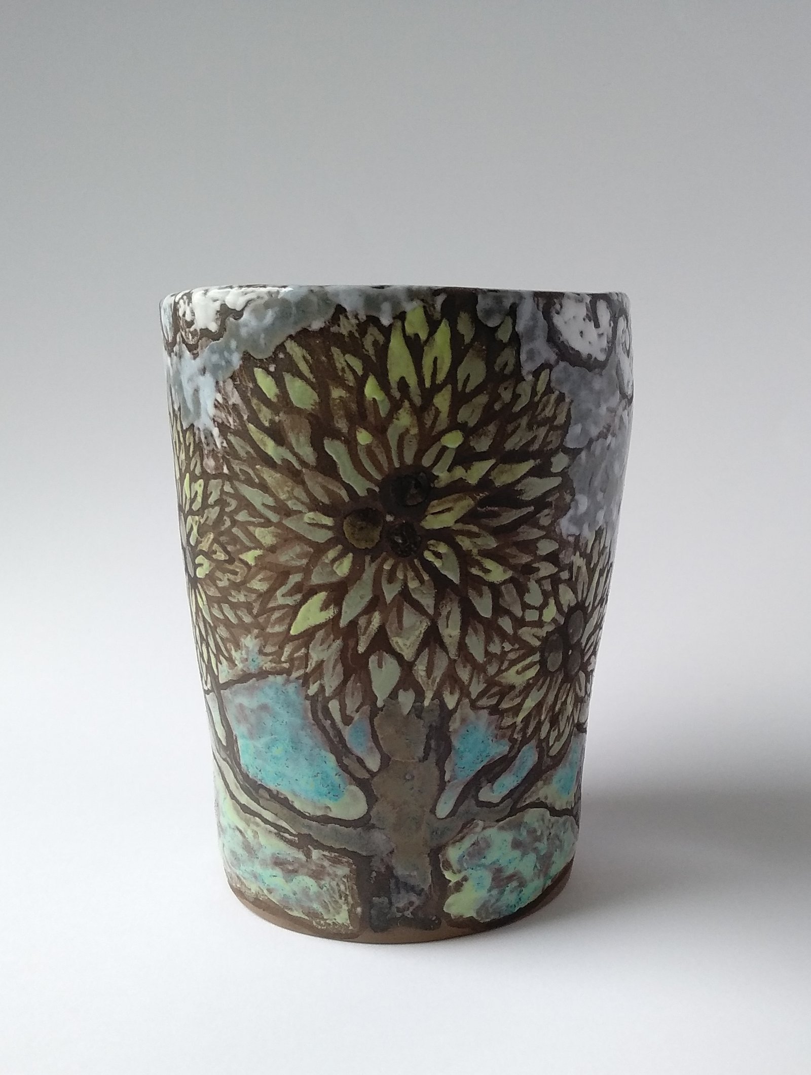 This ceramic cup brings the serenity of nature to your daily routine. Adorned with a hand-painted floral design, it’s a piece of art you can hold in your hands.