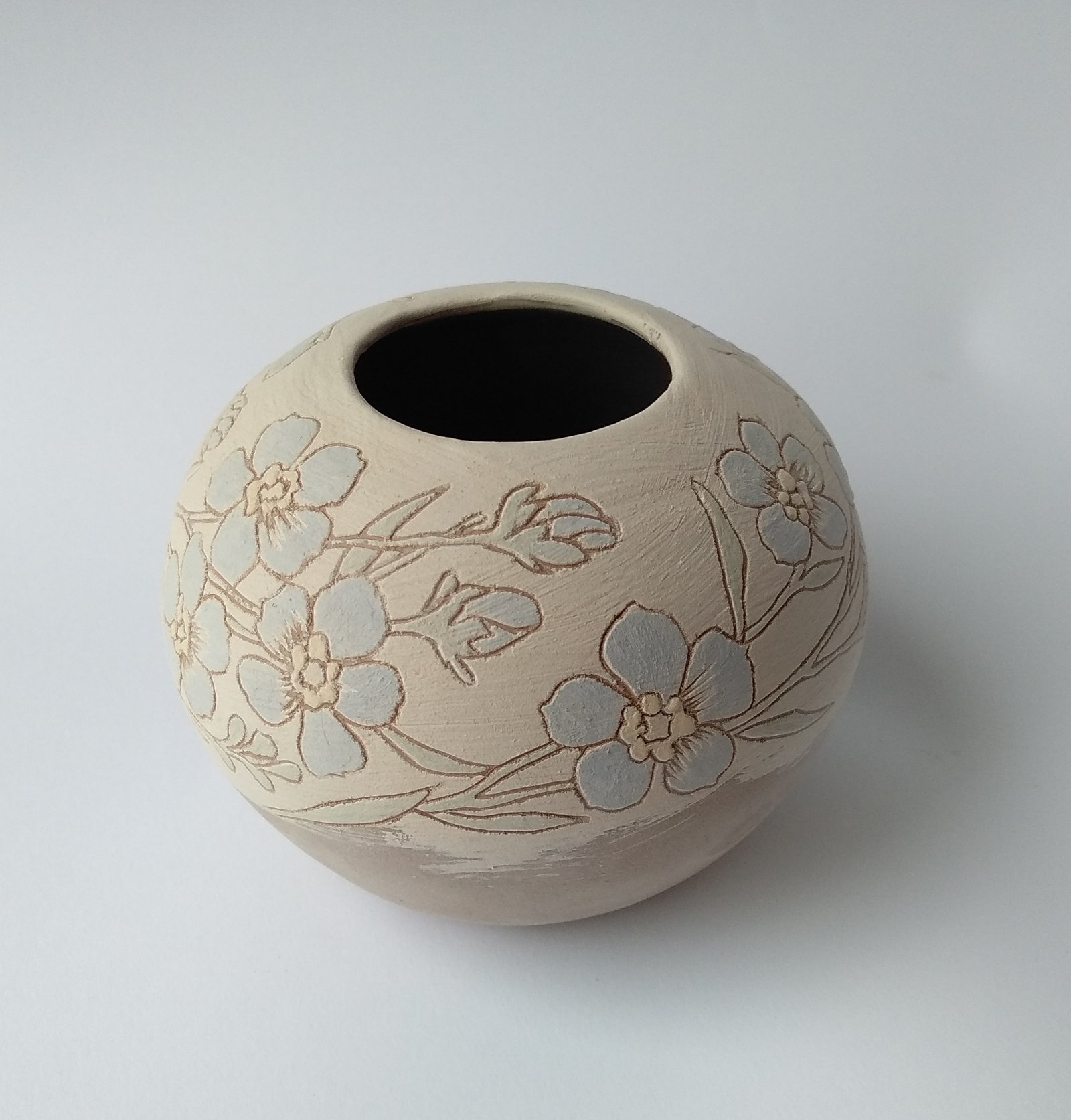 This petite sphere vase adds a touch of natural elegance to any space. Carved with delicate floral details, it’s the perfect vessel for showcasing your favorite blooms.