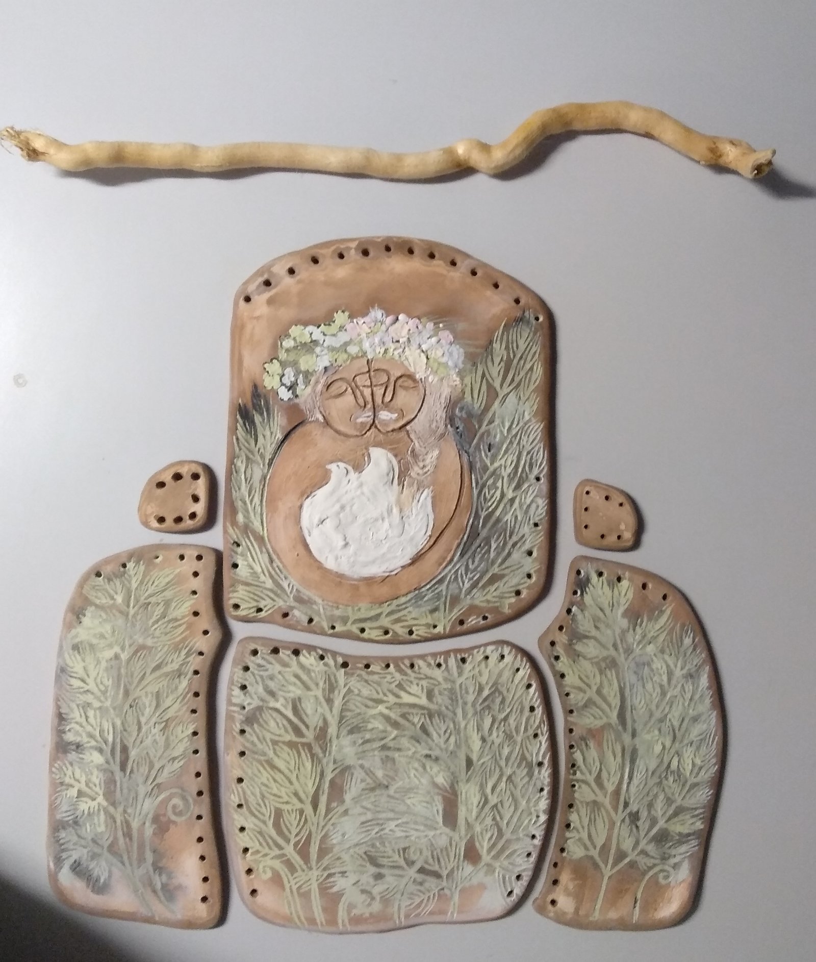 Unleash your creativity with this unique ceramic component set, featuring hand-painted designs of a serene figure adorned with a floral wreath and intricate foliage. Each piece is thoughtfully crafted with pre-drilled holes, perfect for assembling into a personalized bag, wall hanging, or mixed-media art project.