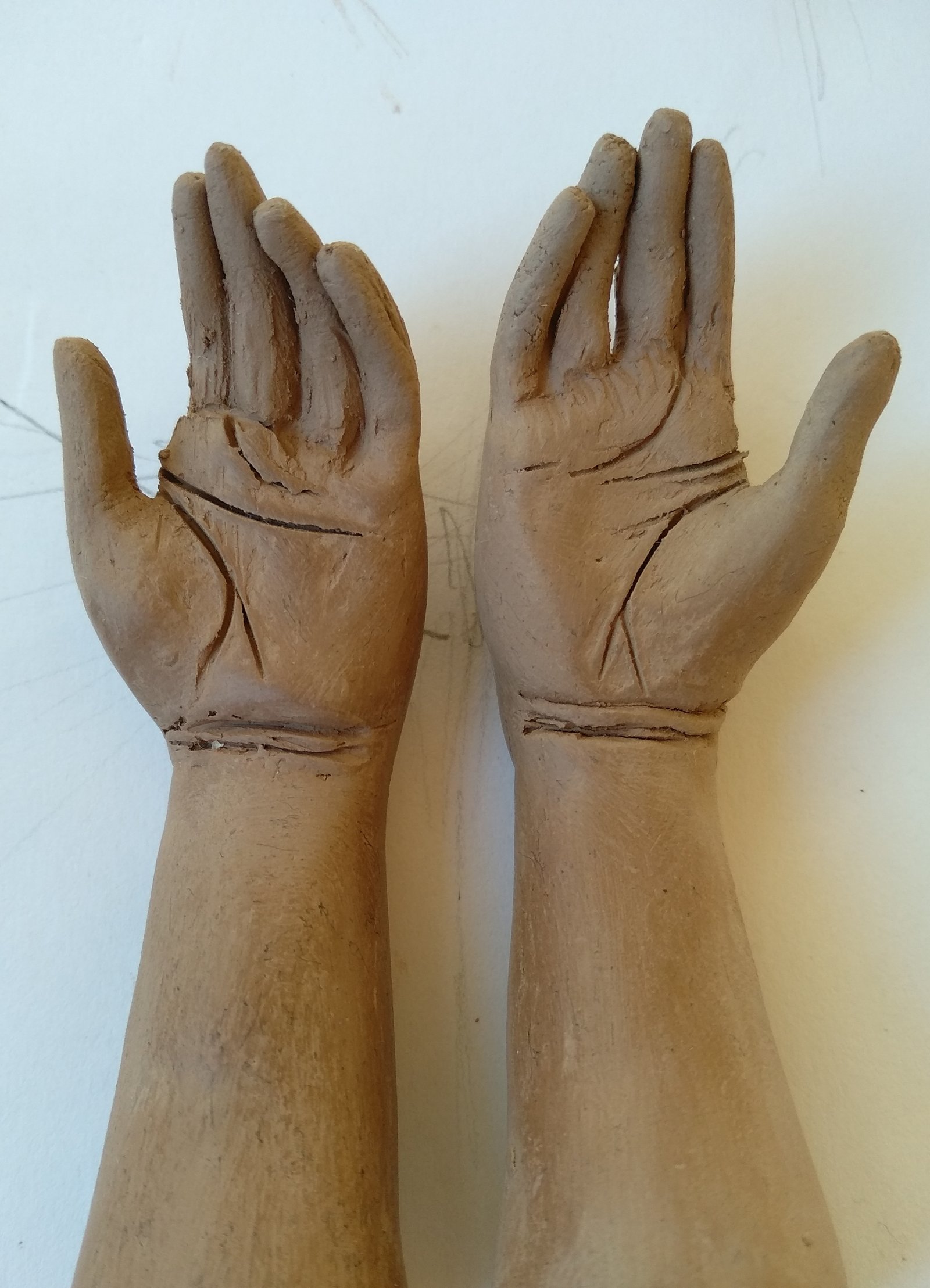 These striking raw clay hand sculptures offer a profound sense of connection and artistry. Their natural, unglazed finish highlights the tactile beauty of the material, bringing an organic touch to any space.