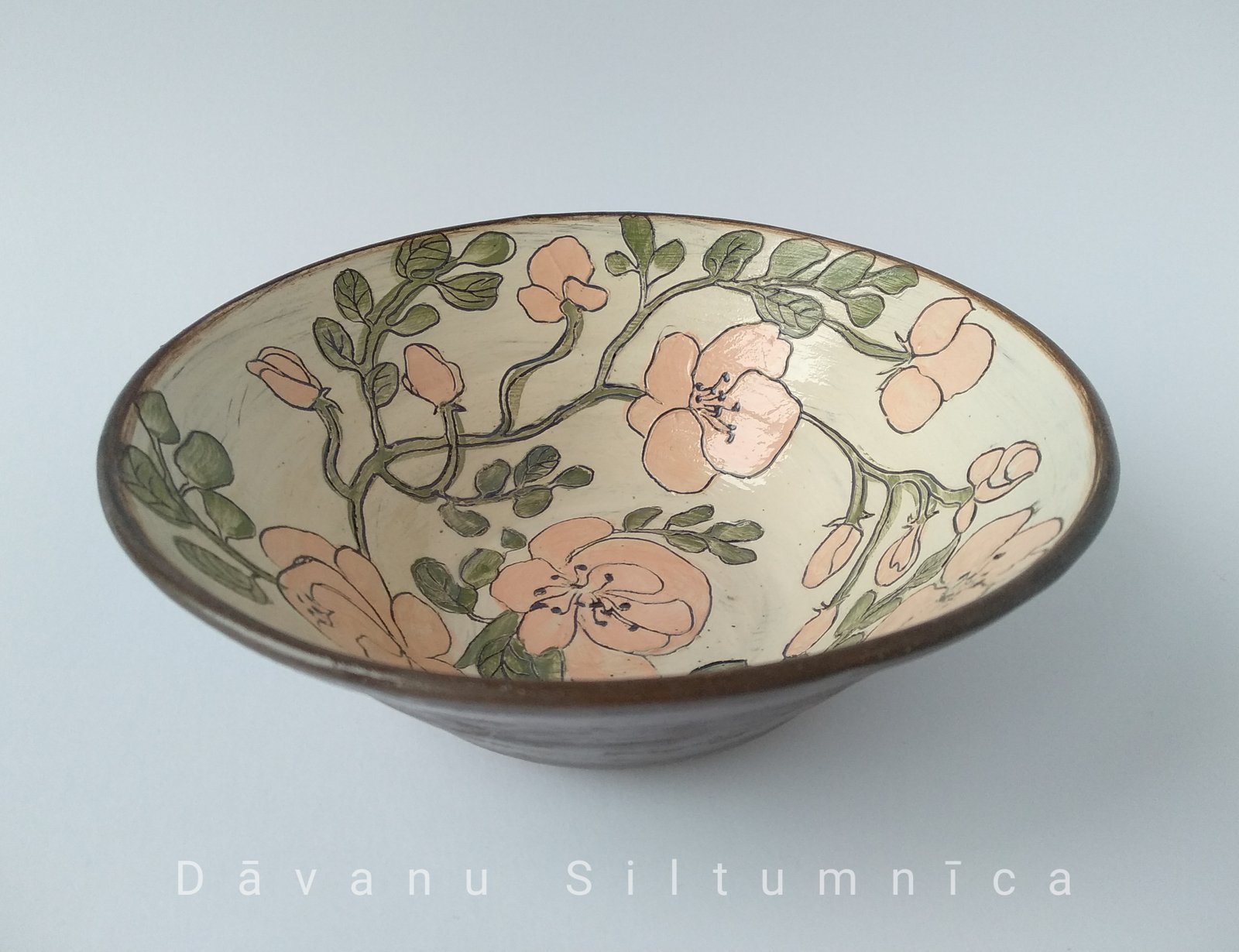 Bring the beauty of a spring meadow to your table with this handcrafted bowl. Featuring delicate hand-painted floral details, this piece adds a touch of rustic charm to any setting.