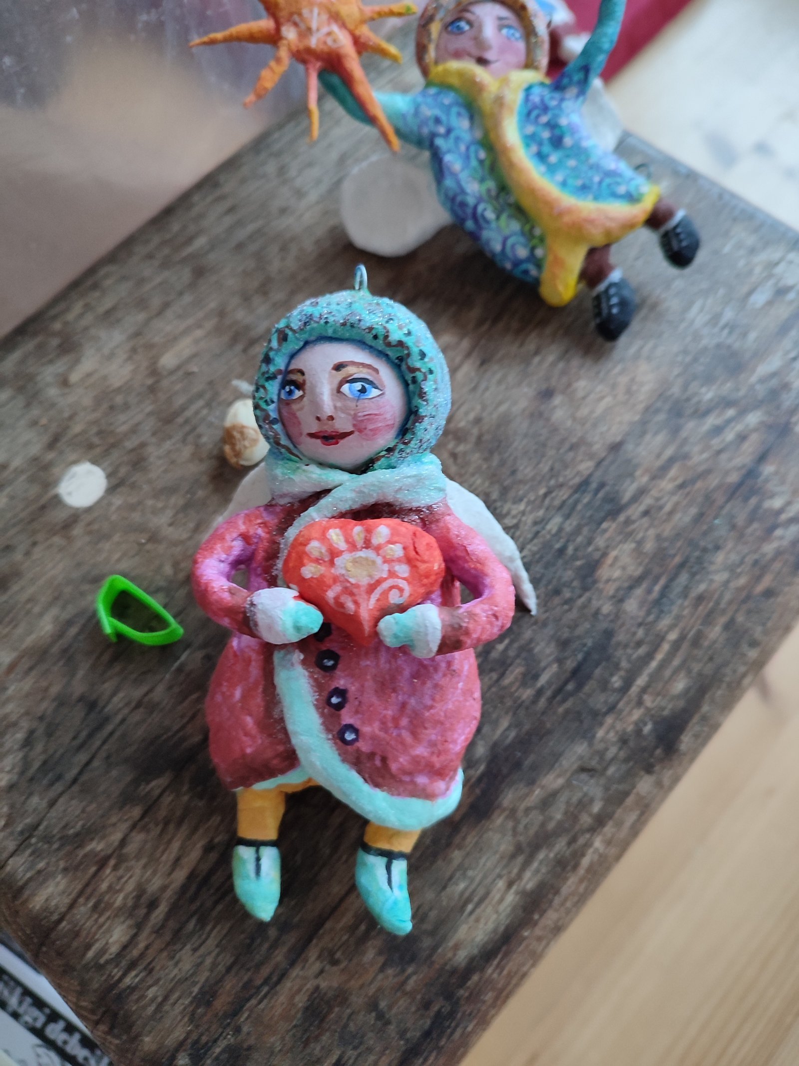 Embrace the warmth of handcrafted charm with this delightful figurine, tenderly cradling a vibrant heart. Each detail, from the expressive face to the intricately painted garments, tells a story of affection and care, perfect for adding a touch of soulful artistry to any space.