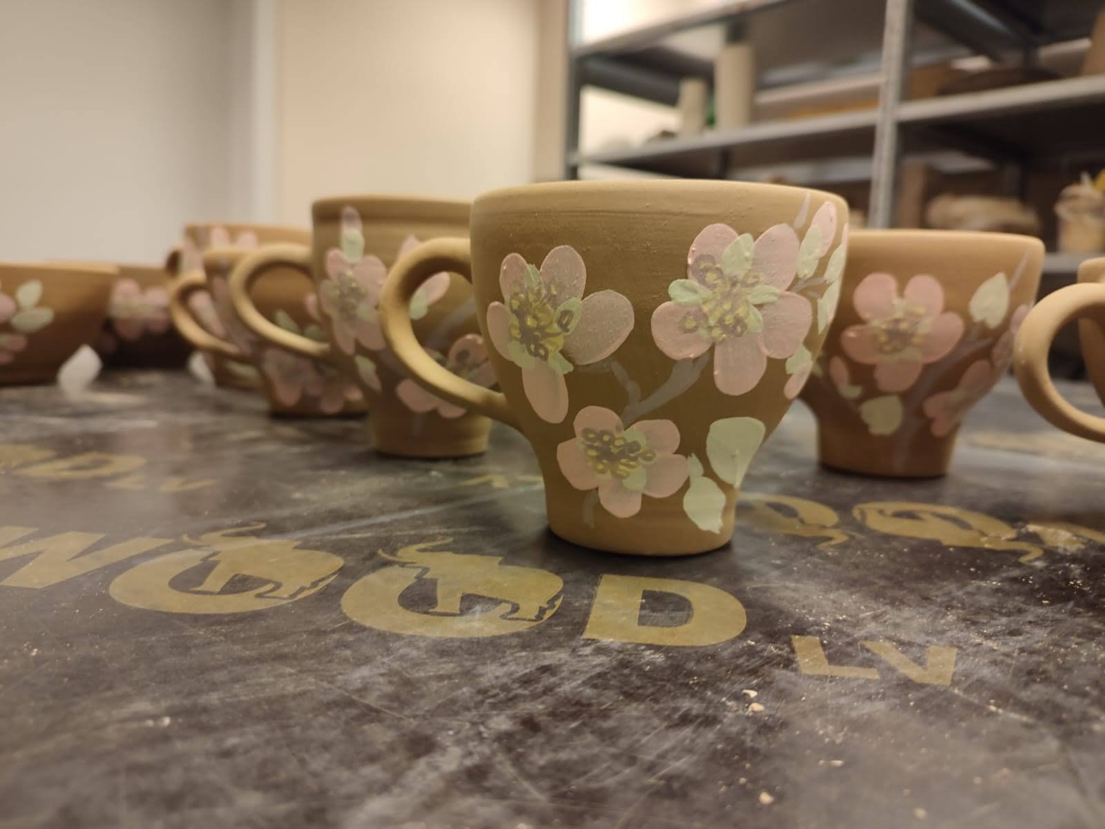 Start your day with the delicate beauty of these hand-painted mugs, featuring charming pink cherry blossom designs on natural clay. Perfect for bringing a touch of springtime elegance to your coffee or tea ritual.