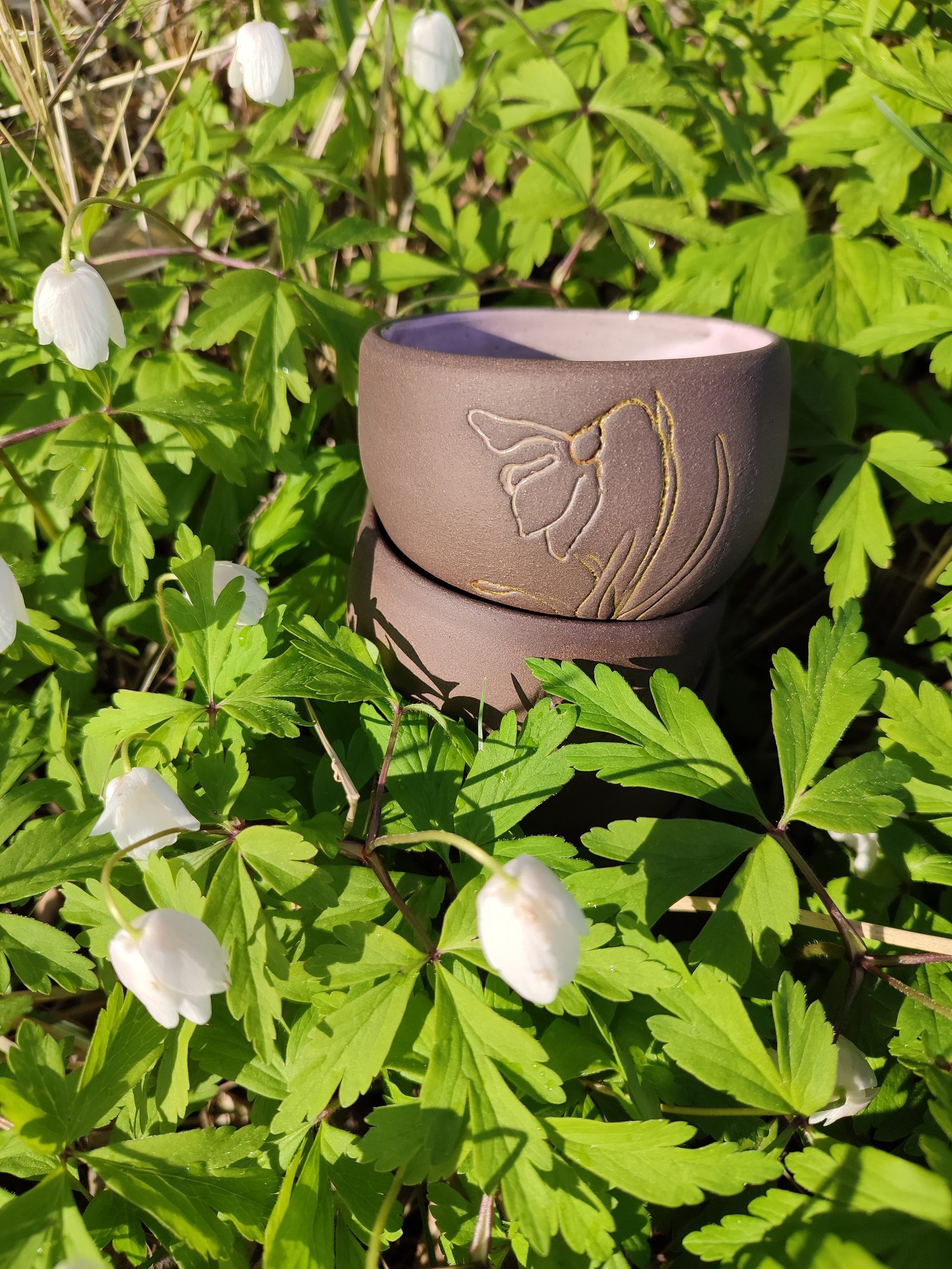 Embrace the tranquility of nature with this exquisite set of two handcrafted pottery cups, featuring delicate lily etchings highlighted in shimmering gold. Perfect for your morning tea ritual or as a charming decorative accent, these cups bring a touch of rustic elegance to any setting.