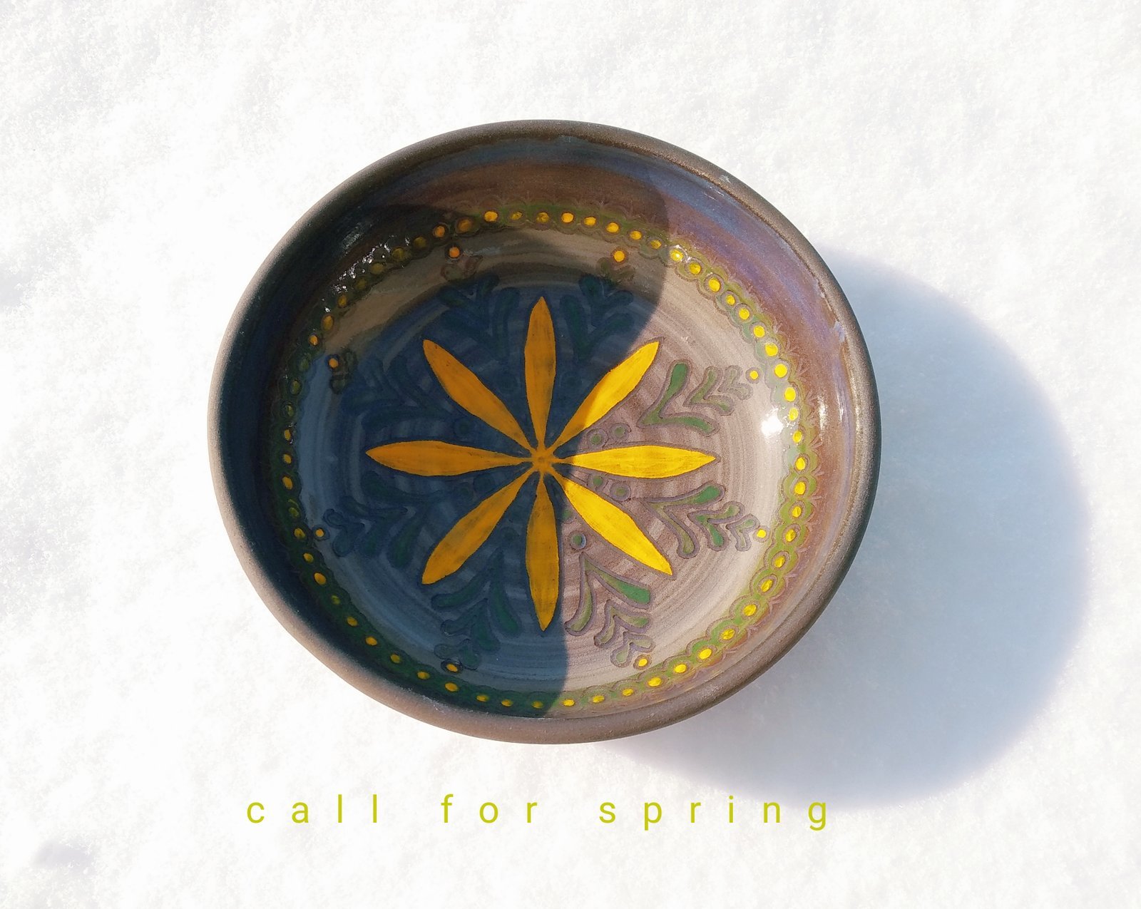 Bring sunshine to your table with this handcrafted ceramic bowl. The hand-painted sunflower design adds a touch of folk charm to any meal.