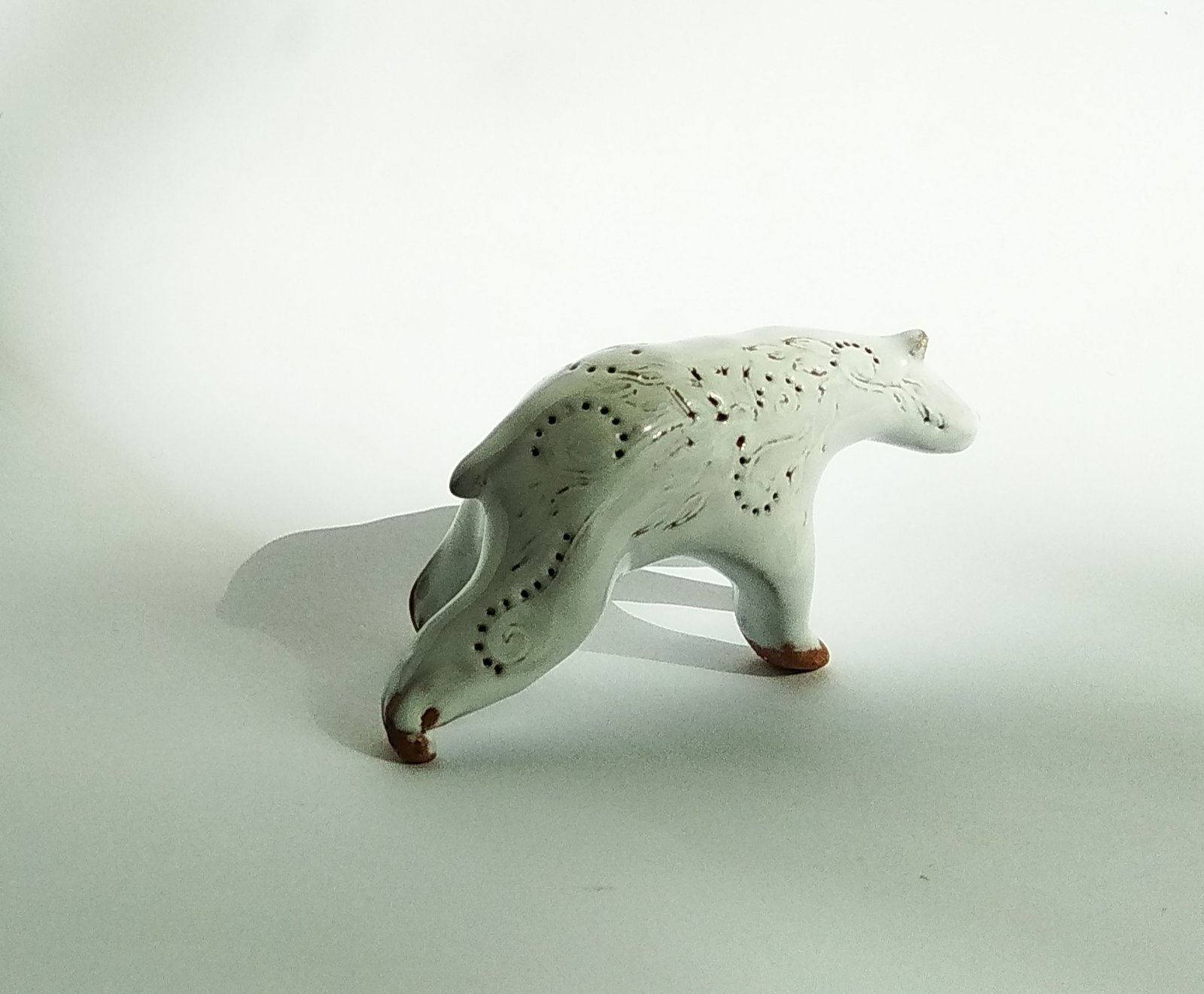 Bring a touch of playful charm to your space with this handcrafted ceramic figurine, resembling a stylized bear or woodland creature. Its speckled texture and gentle form make it a delightful decorative accent for any shelf or desk.