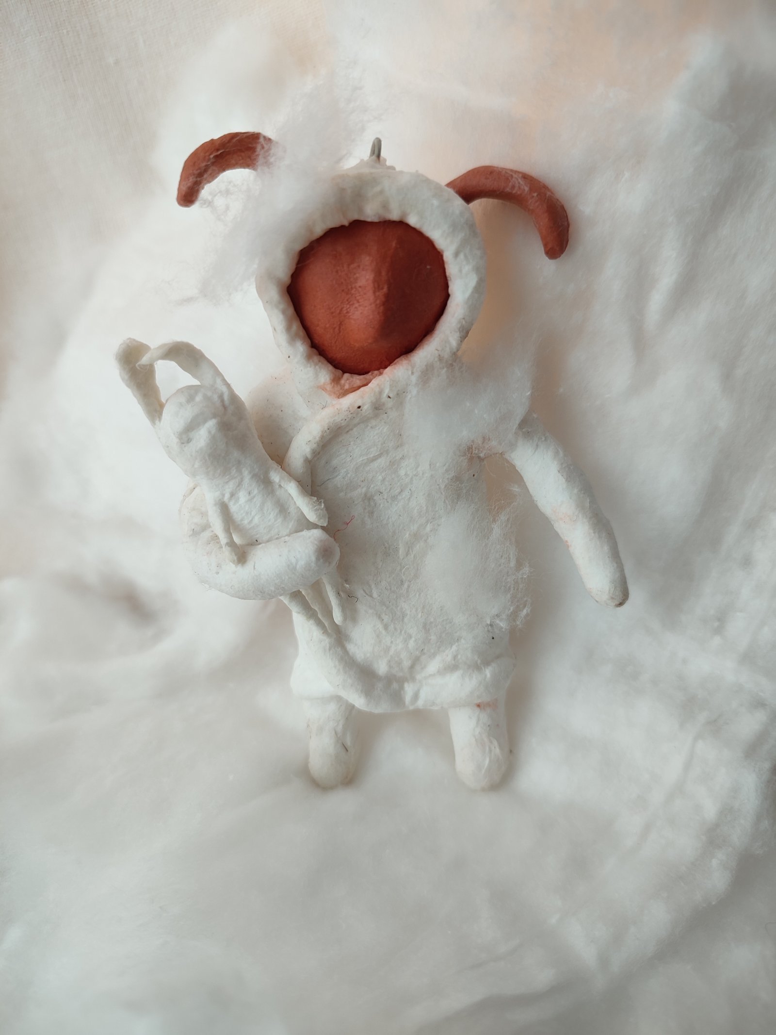 This heartwarming ornament depicts a gentle lamb in a soft, snowy hooded cloak, tenderly cradling a smaller lamb. Handcrafted with intricate detail, it brings a touch of whimsical warmth and serenity to any holiday display or nursery.
