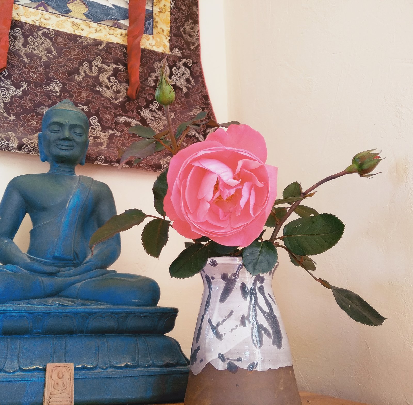 Add a touch of serenity to your space with this hand-crafted vase. Its unique design complements any decor, making it the perfect vessel for your favorite blooms.