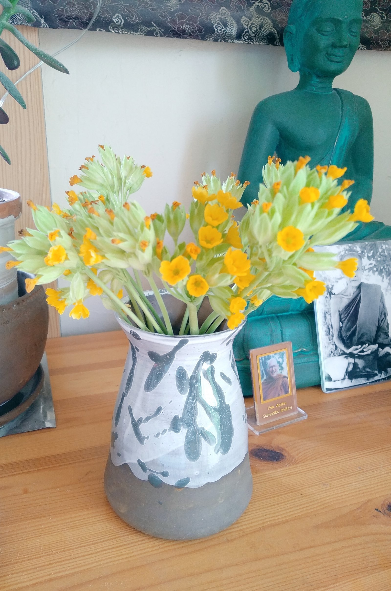 Bring a touch of tranquility to your home with this unique ceramic vase. Its splatter glaze design creates a calming and serene atmosphere, perfect for displaying your favorite blooms.