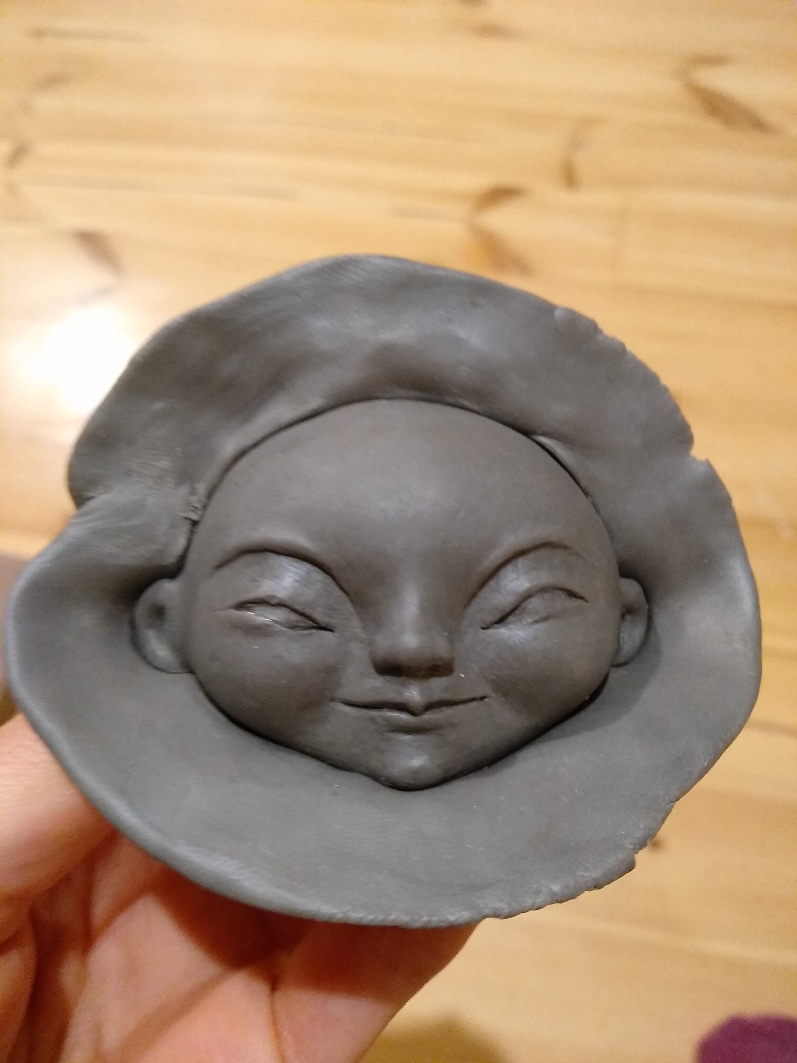 Find your inner peace with Zenith’s Grin. This charming clay face exudes tranquility and adds a touch of whimsy to any space.